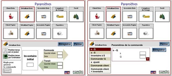 Les decriptions des règles de décision peuvent être obtenues en cliquant sur le bouton d'aide (le point d'interrogation) présent dans chaque interface concernée. Dans les règles, il est parfois fait mention du niveau d'inventaire. Dans ce contexte, il est défini comme étant la somme de l'inventaire physique et de tout ce qui a été commandé mais qui n'a pas encore été reçu moins vos arrérages.
